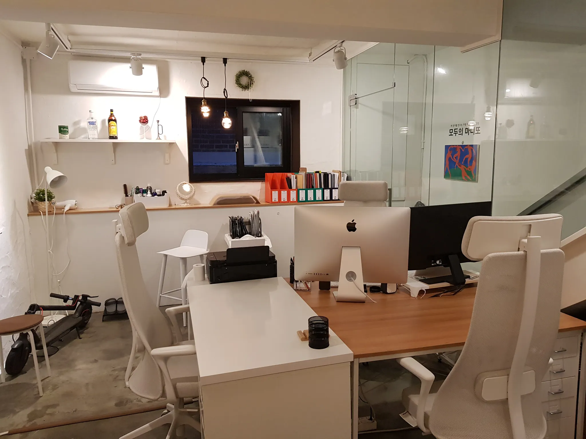 일하다가 답답하면(?) 킥보드타고 가끔 음식 배달하러 나갔다. (사진 오른쪽 아래 배민라이더스 가방)